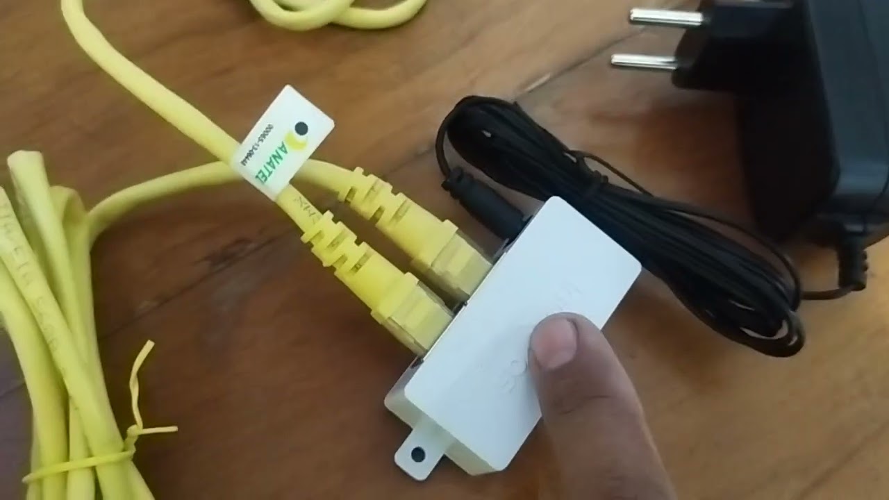- Conecte o injetor POE à fonte de alimentação. Esse dispositivo é responsável por fornecer energia à antena e ao mesmo tempo transmitir dados.